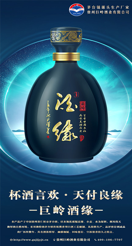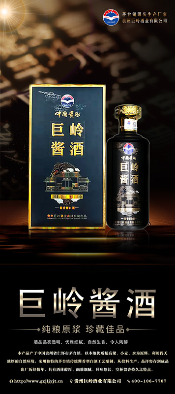 贵州巨岭酒业有限公司,座落于闻名世界的古镇,国酒之乡“茅台镇”。与“国酒茅台”共享得天独厚的气候、土壤、水源、以及微生物群等自然资源;《巨岭酒业》老作坊前身“巨岭烧坊”,经过多年的传承,秉承先辈们代代相传的古法酿造工艺,历经几代人的延续和酿酒发展,奠定了《巨岭酒业》发展的坚实基础。 作为贵州茅台镇本土规模企业,《巨岭酒业》拥有传统发酵窖池200余口,年产优质酱香白酒近2600多吨,储酒能力12000多吨;并配有3条现代化包装生产线;公司现有职工300多名,有酿酒师15人,技术人员22人,本科以上学历管理人员12人,大专学历工作人员78人,是茅台古镇酱酒传承的白酒知名企业。 《巨岭酒业》励精图治与精益求精的发展理念,已成长为行业认可、社会公认的“规模酿酒企业”,酒业协会副会长单位”和“爱心企业”。 公司现在拥有:《巨岭酱酒》,《岭台》,《玉岭烧坊》,《酒缘》《情满壶》等上百个品牌产品,公司注重品牌发展,以《巨岭酱酒》为品牌核心,以个性化定制和尊贵封藏为营销模式,制定出“一核两柱”的销售模式?!毒蘖虢淳啤纷魑放浦魈?,做扩展市场的排头先锋,全国布局,点线结合,网状布局,包括《巨岭》系列产品.... |